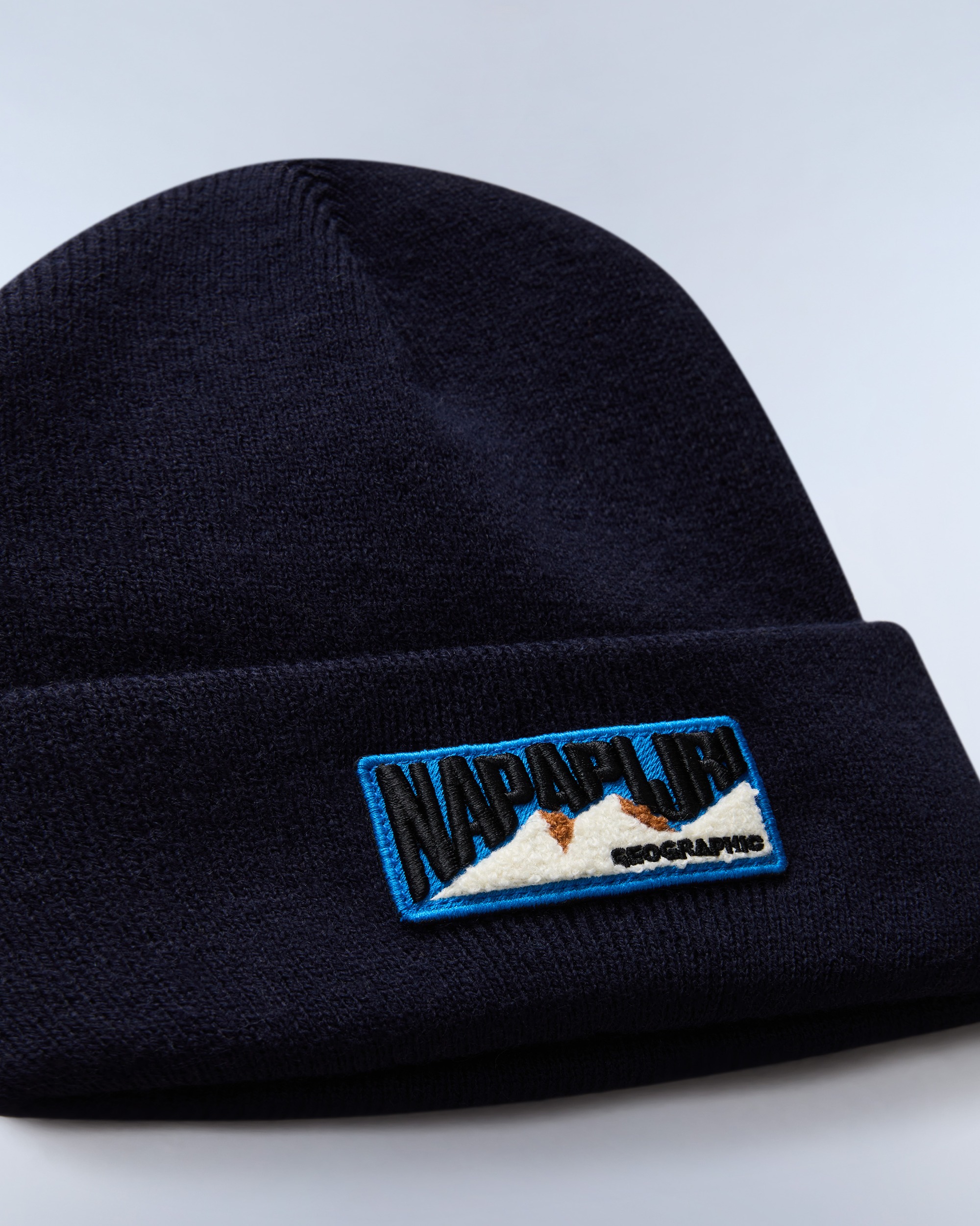 Călduroasă și confortabilă, căciula Montepiana are o croială lejeră și este decorată în față cu emblematica insignă Napapijri Geographic cu motiv montan.