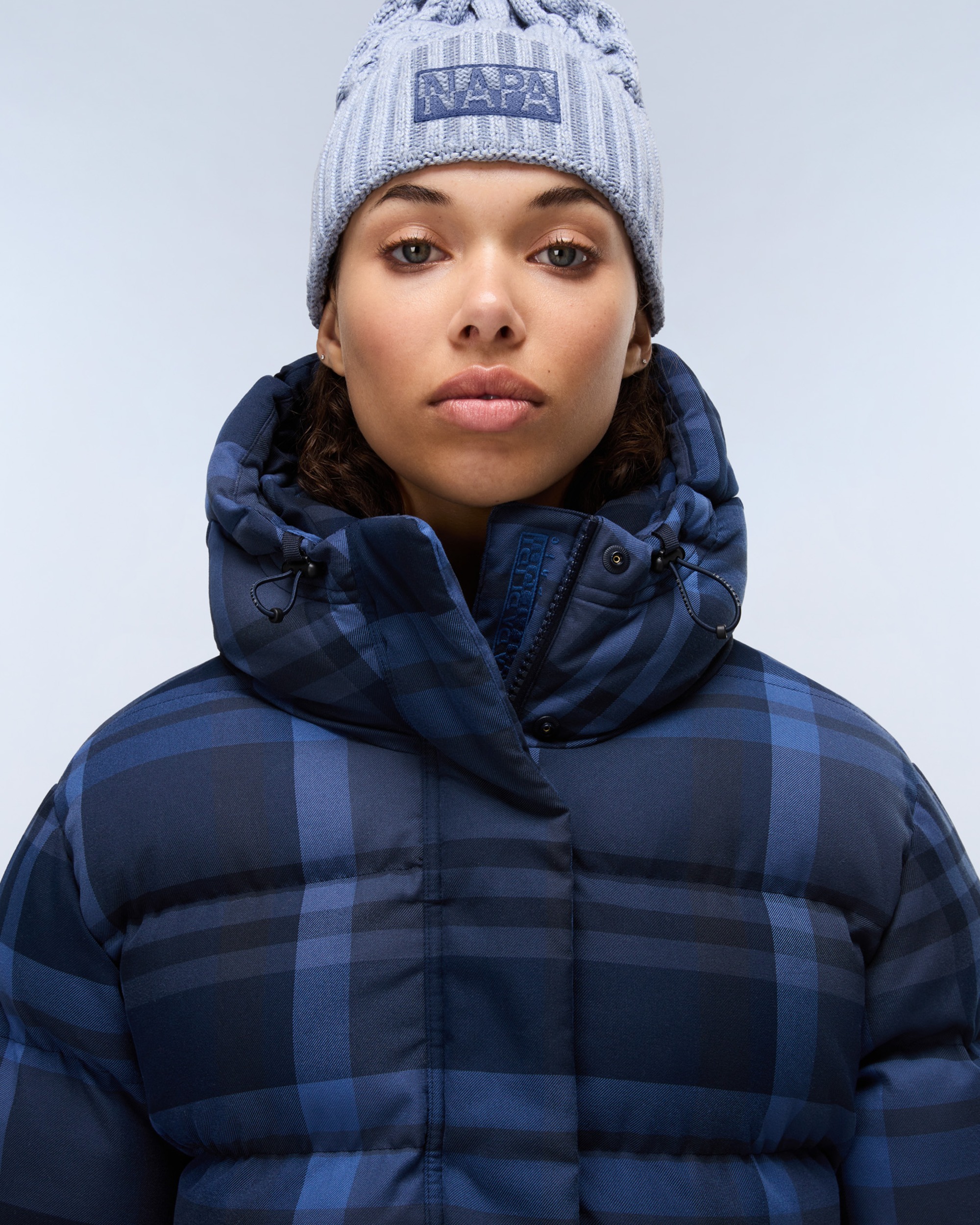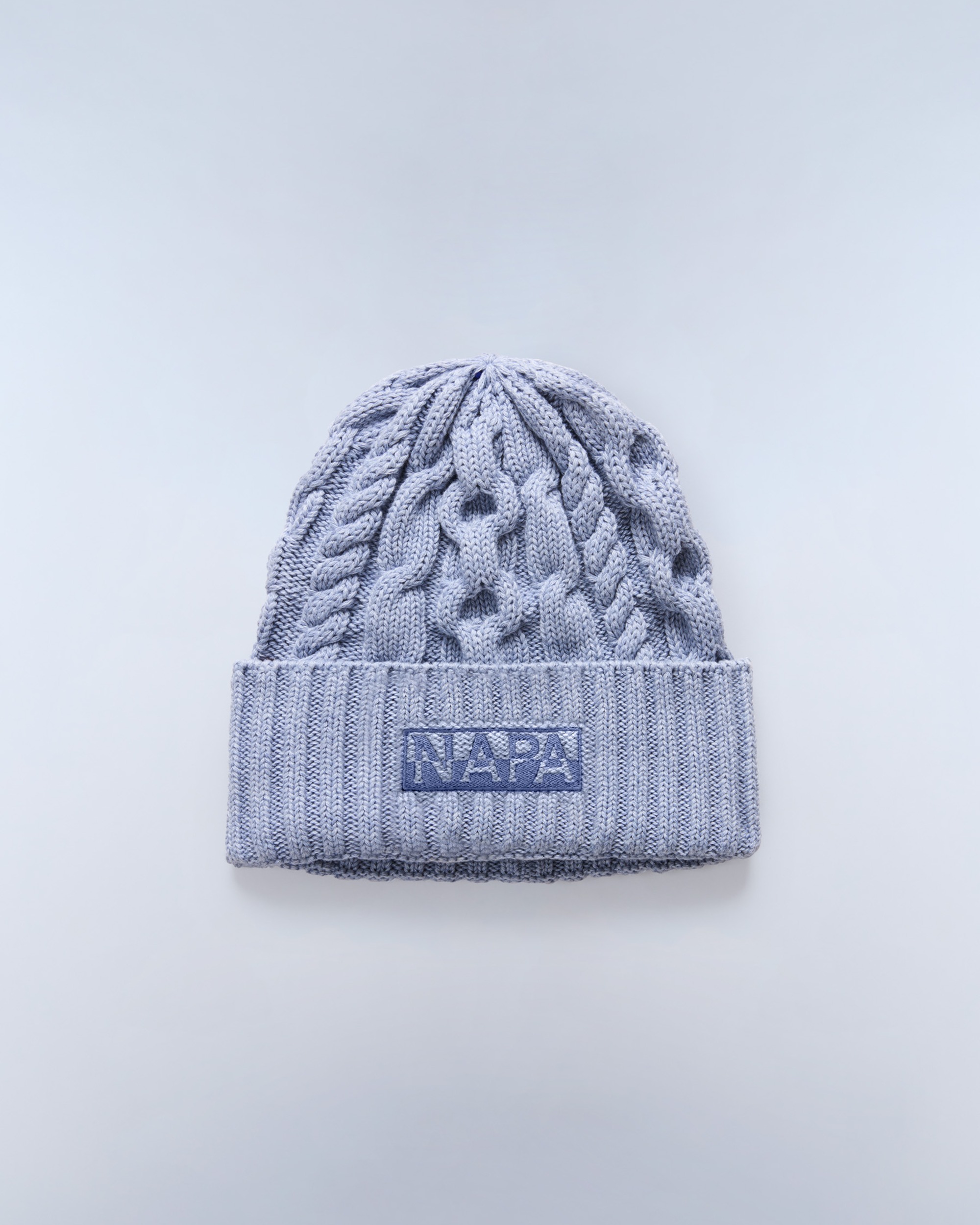 Căciula Tires combină estetica urbană streetwear cu un material călduros din bumbac și lână. Manșeta din față este decorată cu broderia logoului Napapijri în stil split, emblematică pentru brand.