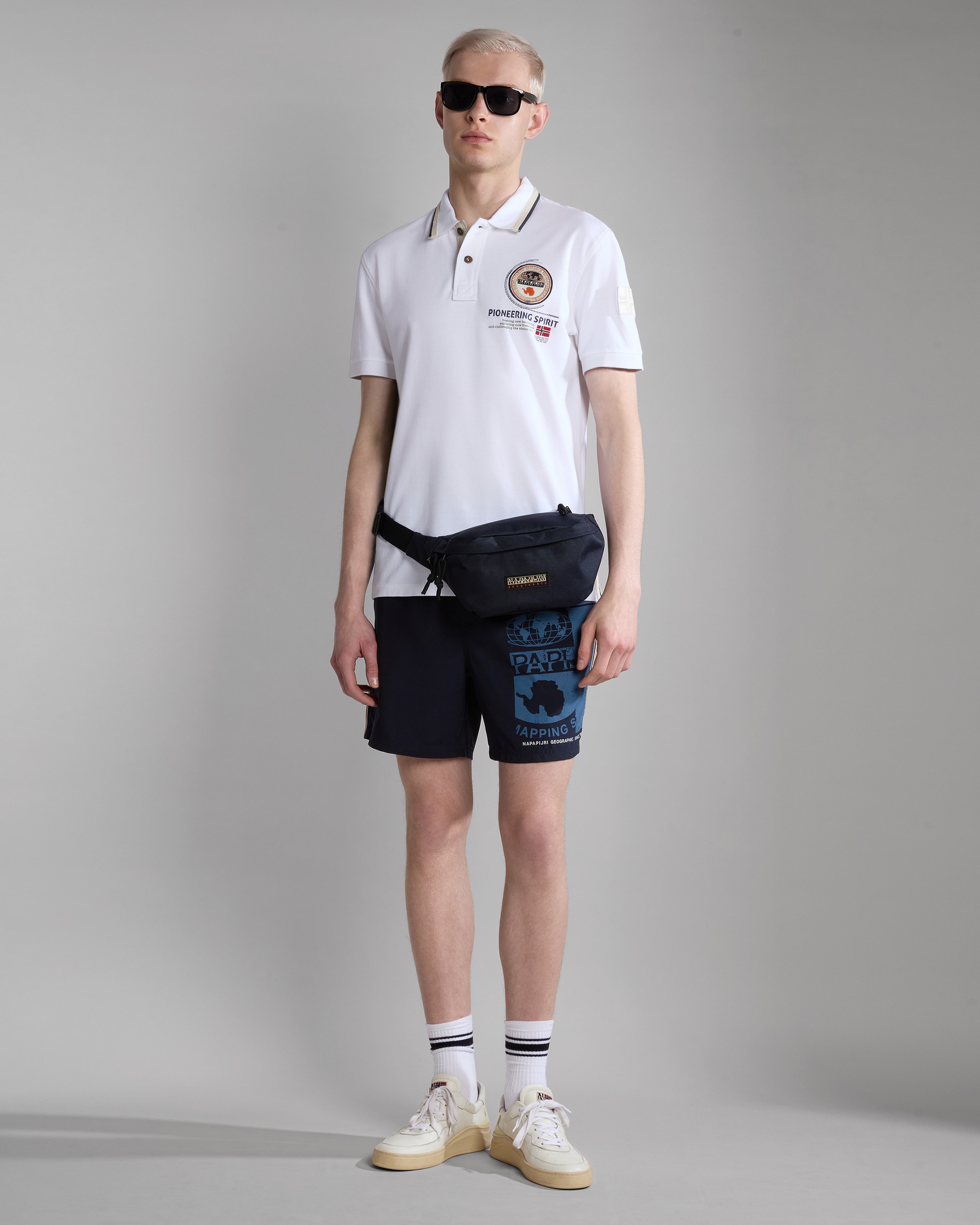 Șortul Galapagos combină funcționalitatea cu grafica distinctivă Napapijri. Talia reglabilă cu șnur și capse din plastic asigură o potrivire optimă, iar logo-ul aplicat la șold completează designul cu un accent recognoscibil.