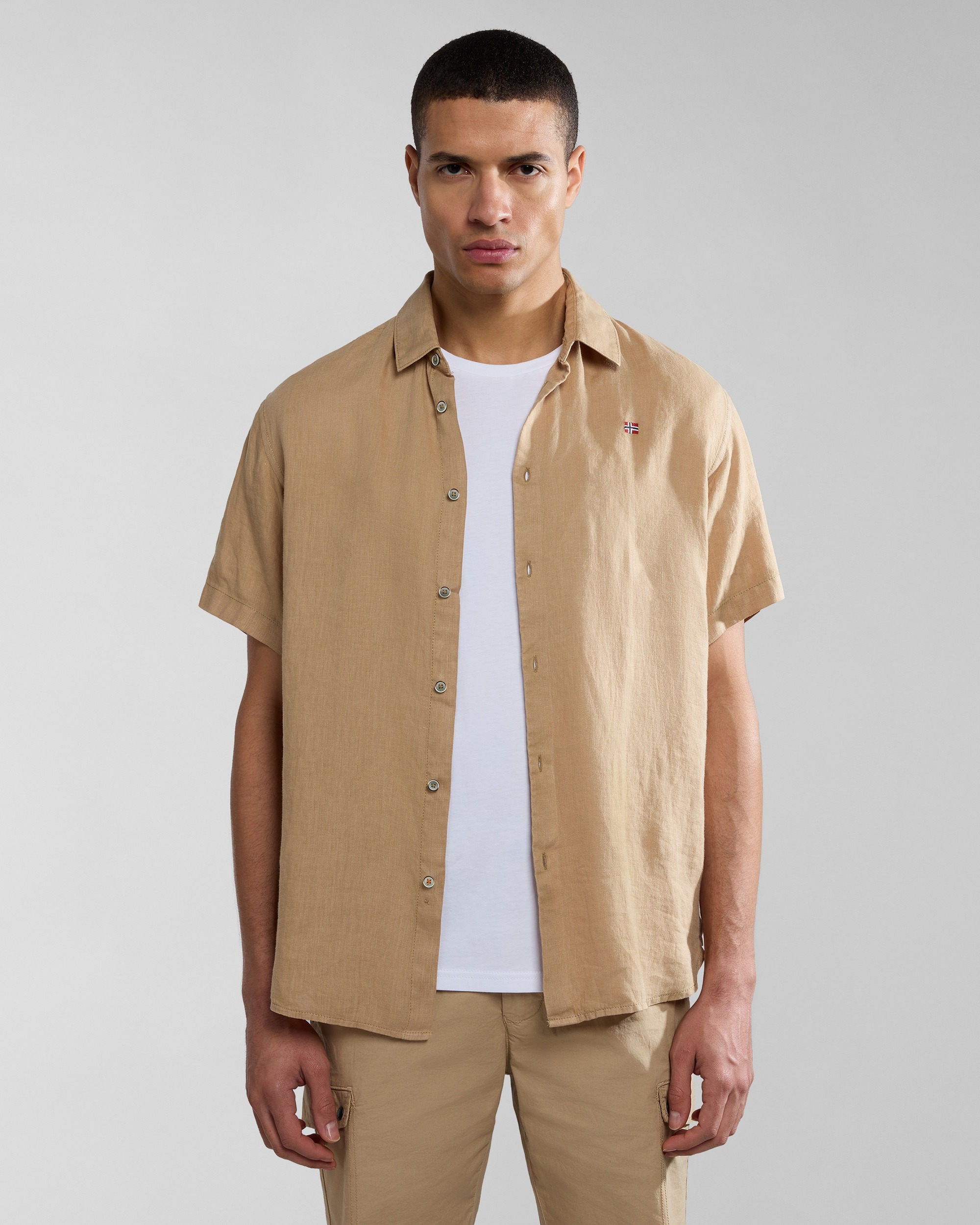 Confecționată din 100% in, cămașa Linen cu mânecă scurtă este un stil smart-casual, ușor și aerisit pentru zilele călduroase. Are închidere clasică cu nasturi și detalii brodate pentru un finisaj autentic brandului.