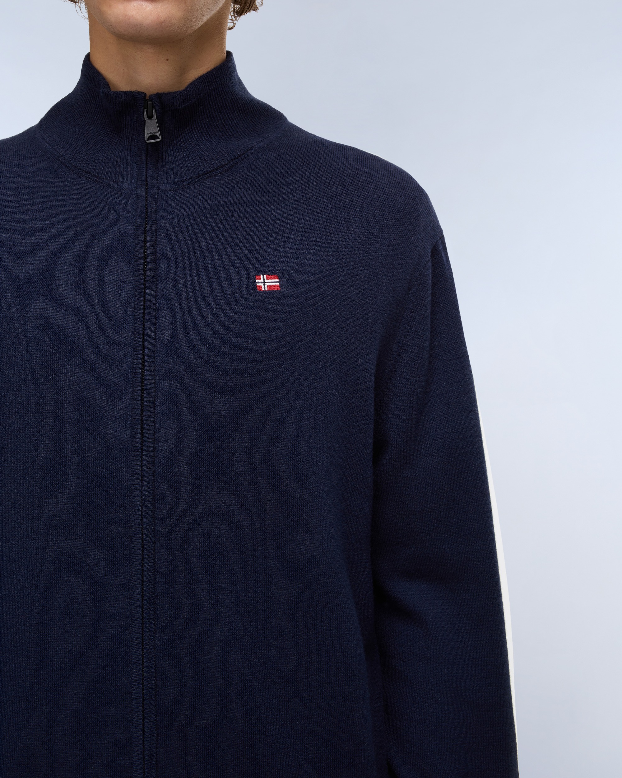 Confecționată din 100% lână fină, bluza cu fermoar integral Damavand este stratul intermediar ideal. Vă ține cald cu gulerul tunsoară, are un steag al Norvegiei brodat pe piept și manșete cu dungi contrastante pentru o finisare rafinată.