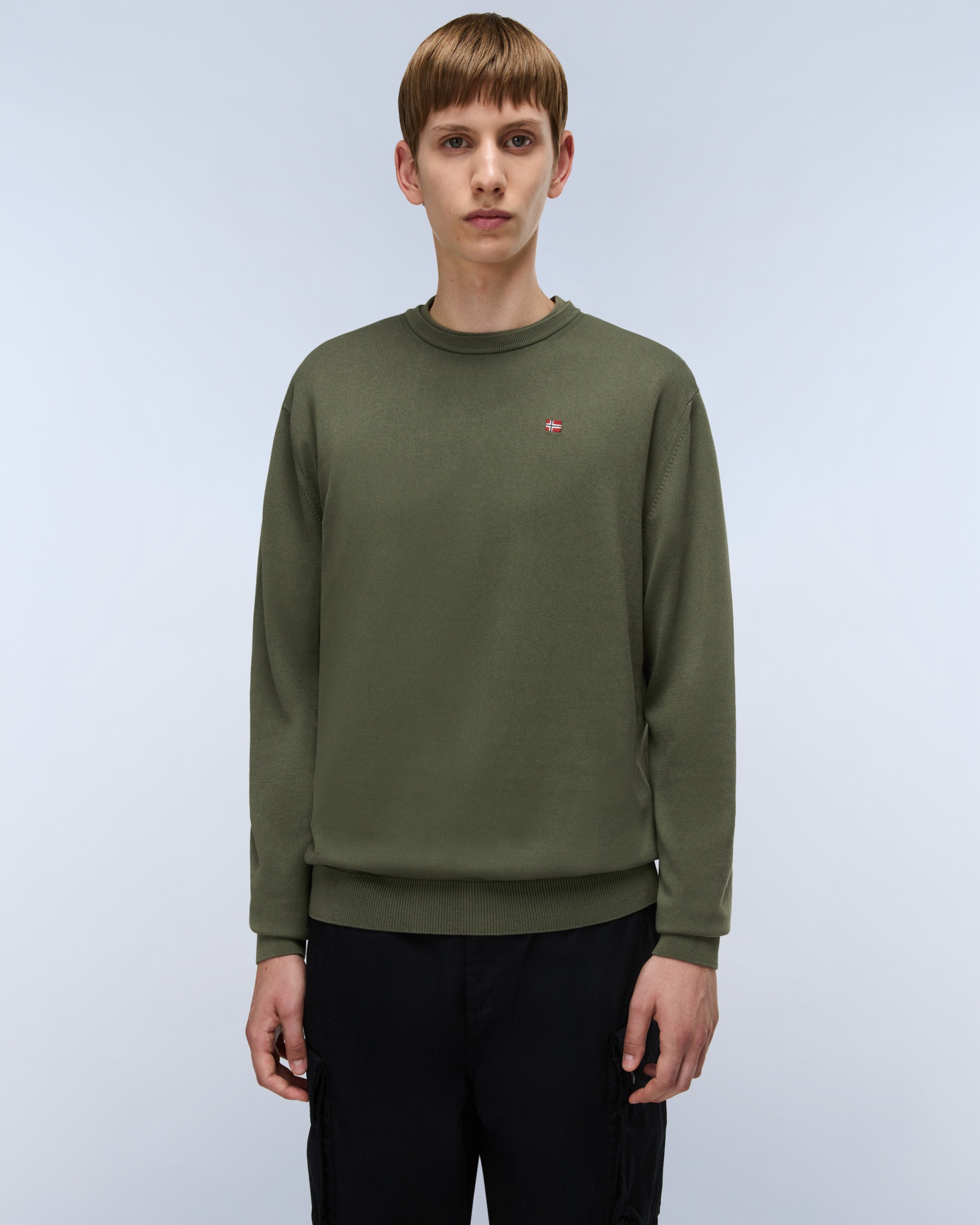 Actualizată într-o nouă țesătură vopsită după confecționare, bluza Droz este un tricot elegant și lustruit, pentru ținute elegante și casual. Acest model din 100% bumbac are guler rotund, detalii din coastă și un mic steag al Norvegiei brodat pe piept.