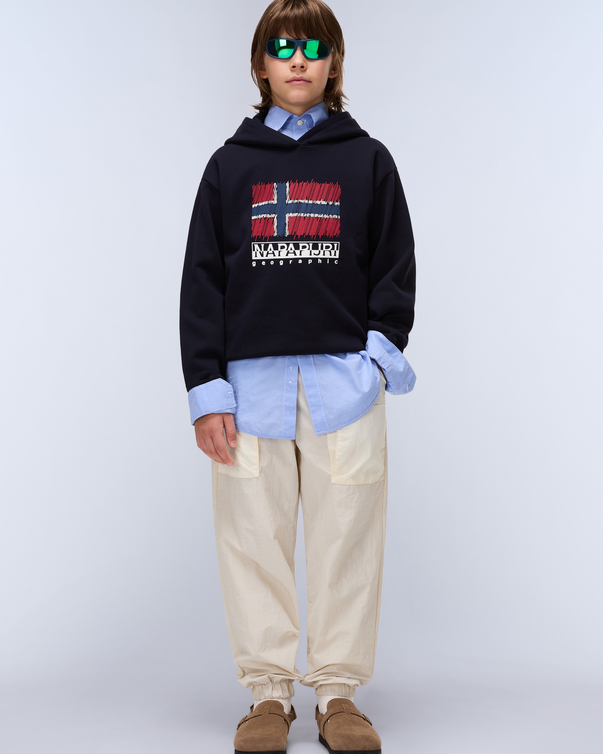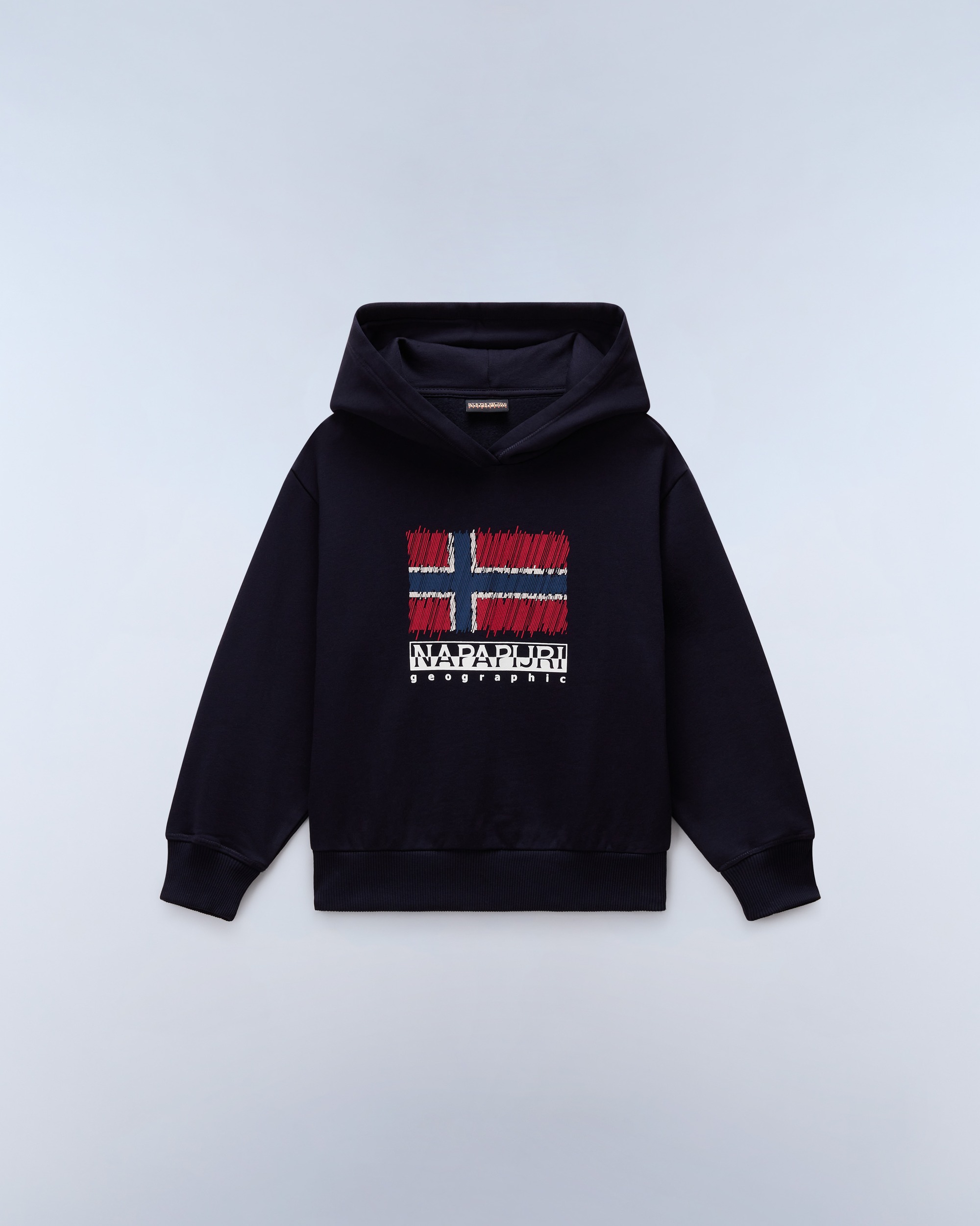 Cu grafice în stil retro, hanoracul Adige pentru copii este proiectat pentru confort, datorită croielii lejere, a unei glugi încăpătoare și a unei țesături confortabile din amestec de bumbac.