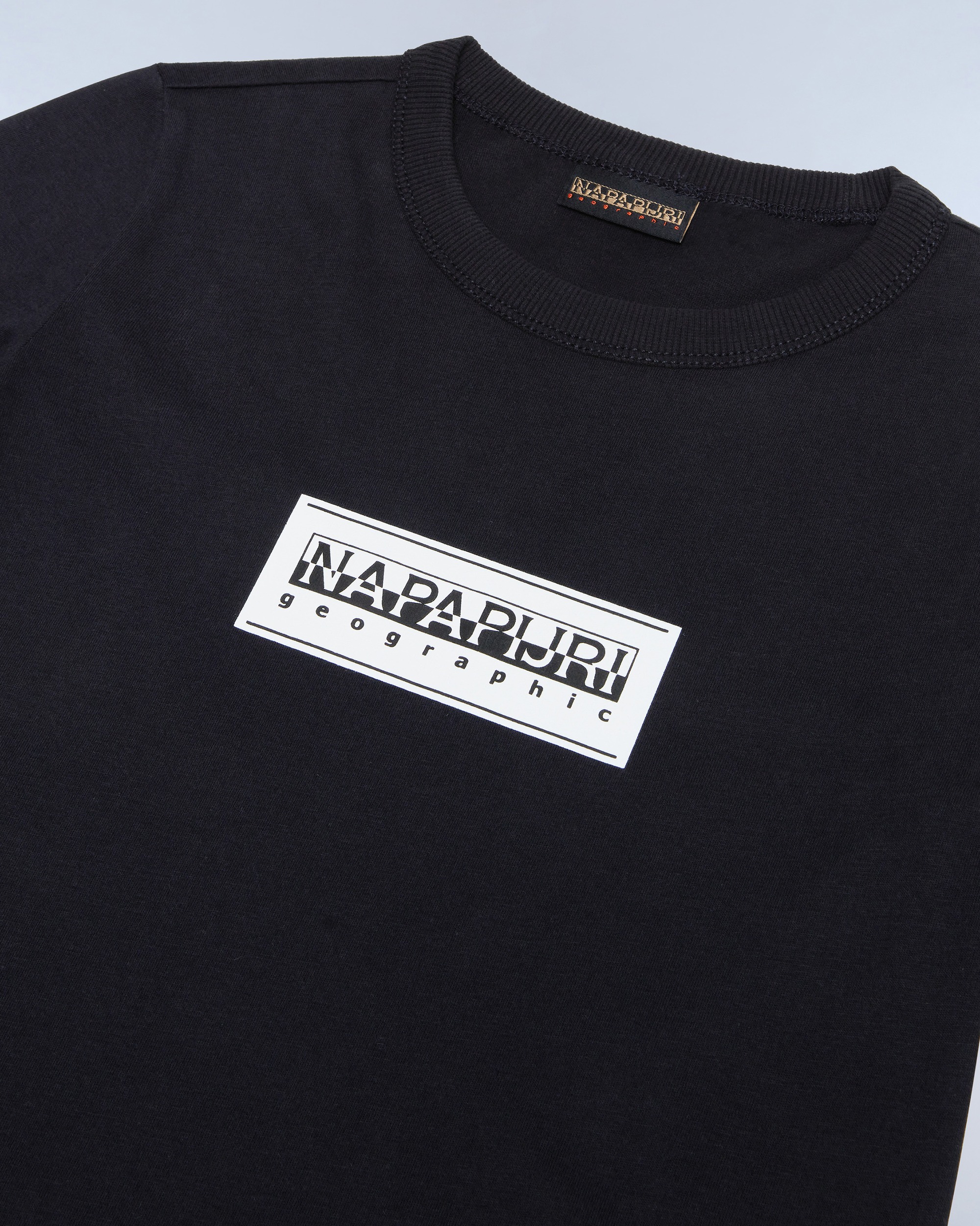 Simplu și curat, tricoul Chamois din 100% bumbac pentru copii are un prim strat cald și casual, datorită gulerului rotund, mânecilor lungi și graficului Napapijri Geographic pe piept.