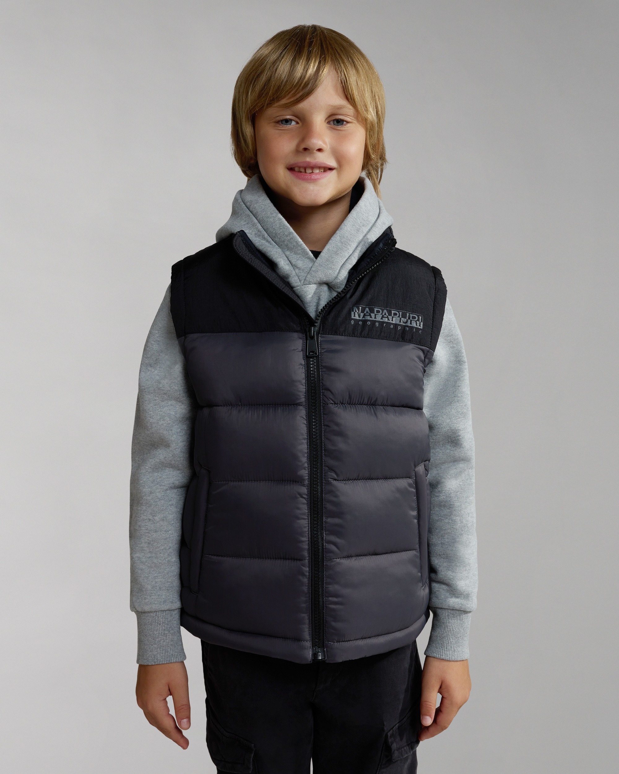 Vesta Hornelen pentru copii încorporează toată expertiza designului vestimentar Napapijri pentru a oferi un gilet la fel de funcțional precum este de confortabil. Este confecționată dintr-o țesătură rezistentă la apă din poliamidă 100% reciclată și are o umplutură Thermo-Fibre™ fără puf din poliester 100% reciclat. Acest strat superior este completat cu un fermoar, buzunare și guler înalt.