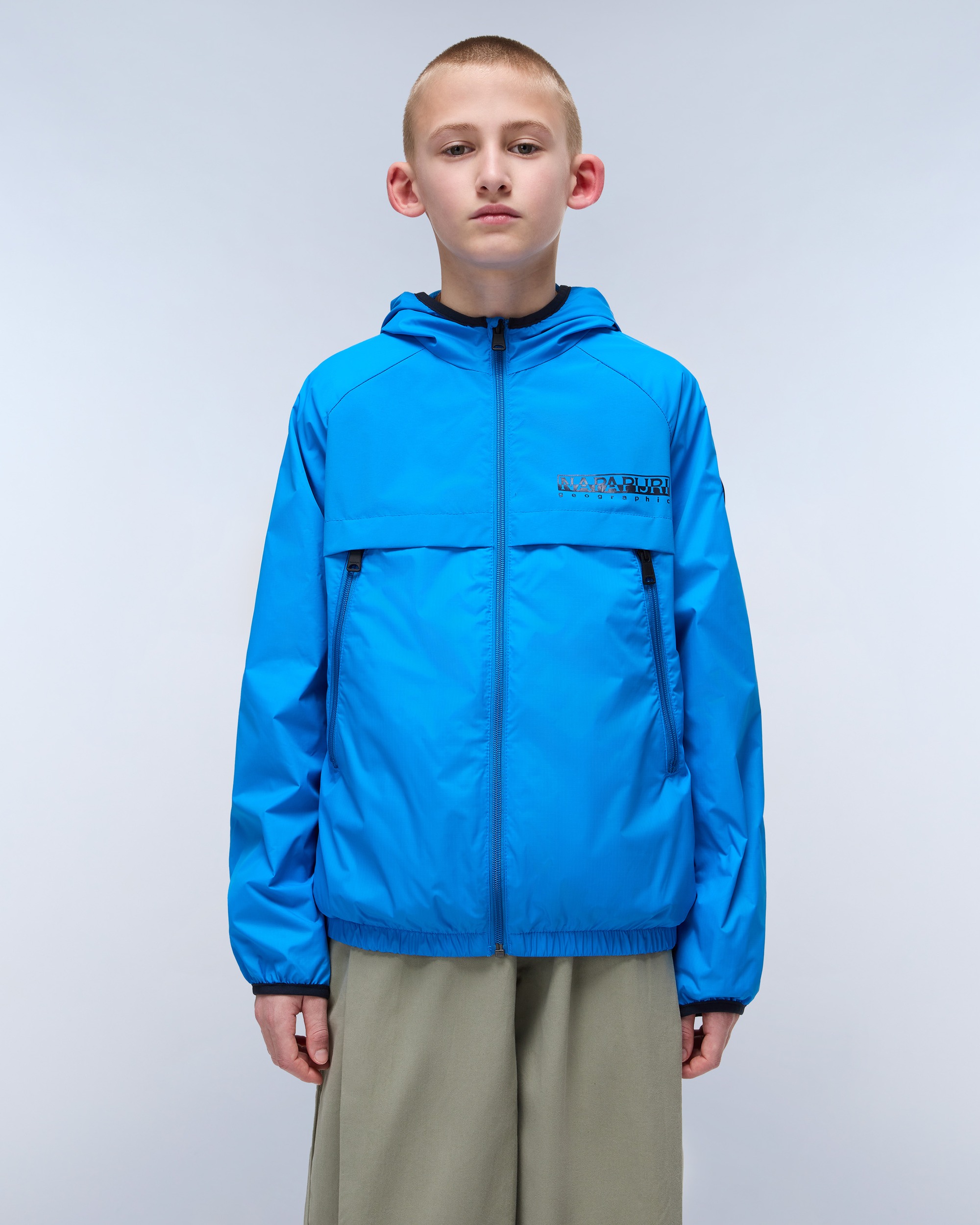Rezistentă la apă și respirantă, geaca medie Allori pentru copii este proiectată pentru condiții meteorologice cu ploaie și vânt. Este confecționată dintr-o țesătură ușoară reciclată ripstop și are fermoar frontal, glugă practică și printul signature Napapijri Geographic pe piept.