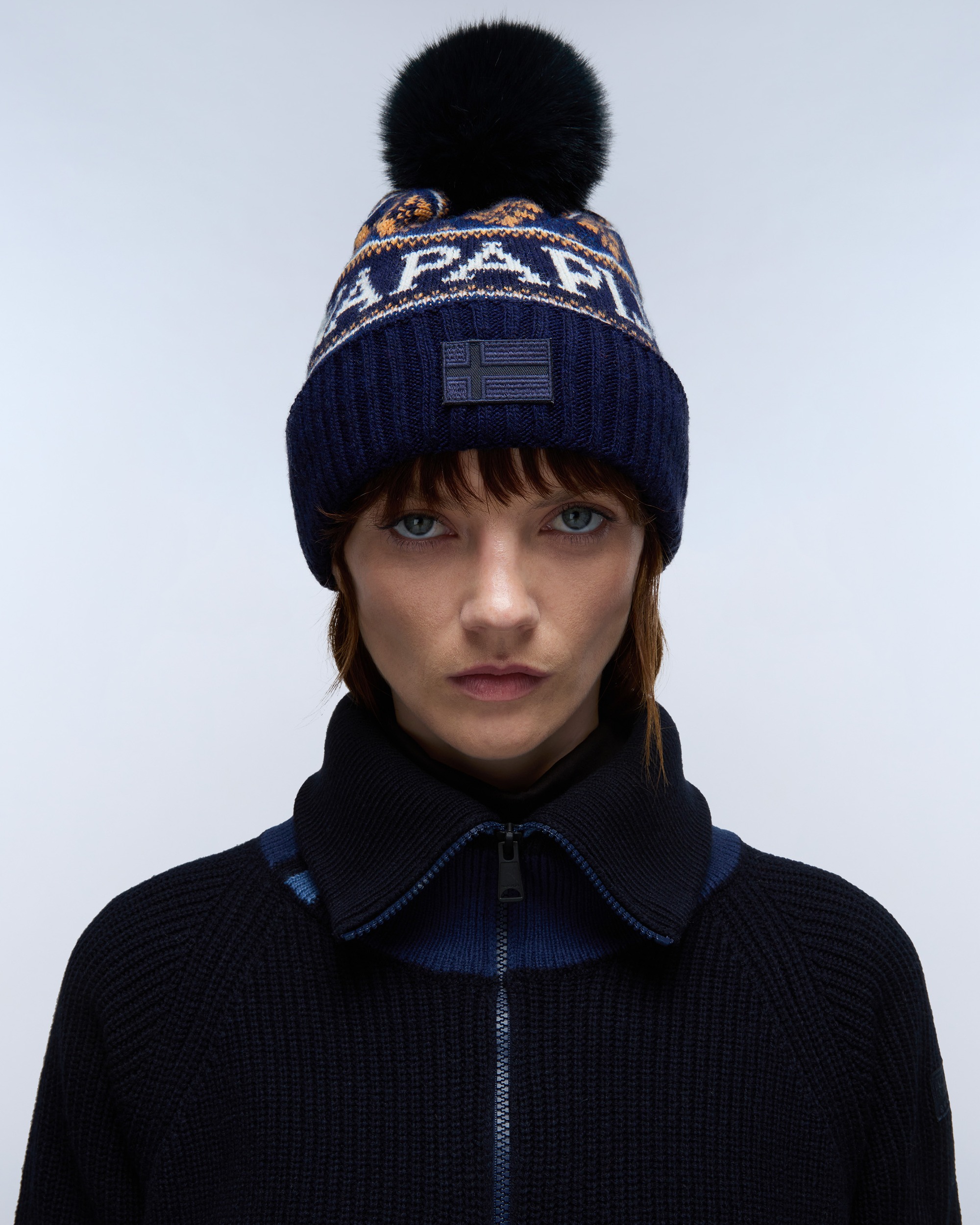 Cu un design tricotat, patch cu steagul Norvegiei și material cu nervuri din amestec de lână, căciula Soiusa pentru femei este un accesoriu de iarnă călduros, inspirat de estetica retro.