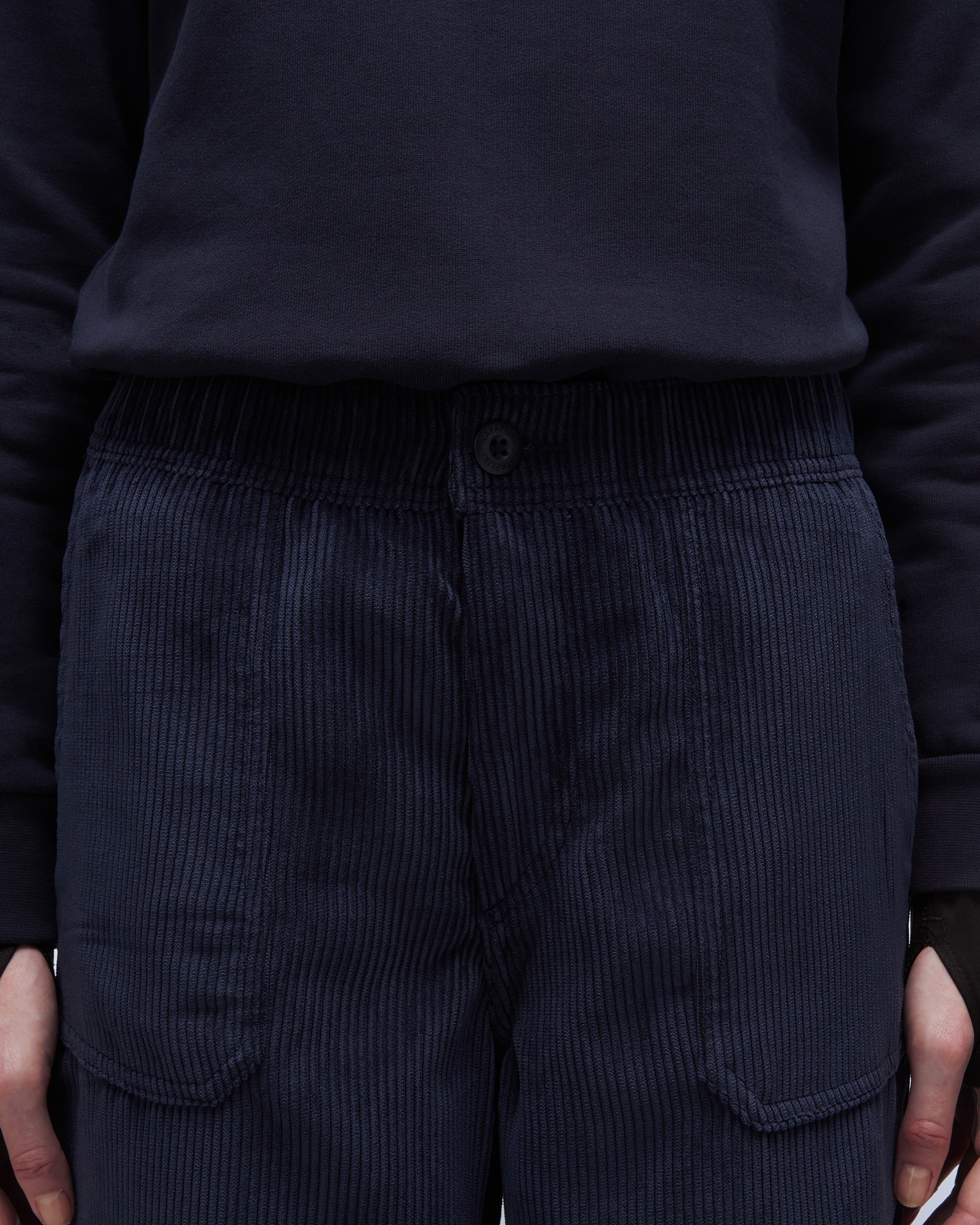 Finisați cu un estetic inspirat de articolele utilitare, pantalonii Laye pentru femei sunt proiectați pentru confort, datorită benzii de talie elasticizate, închiderii cu fermoar și nasture și a țesăturii cu ușoară întindere.