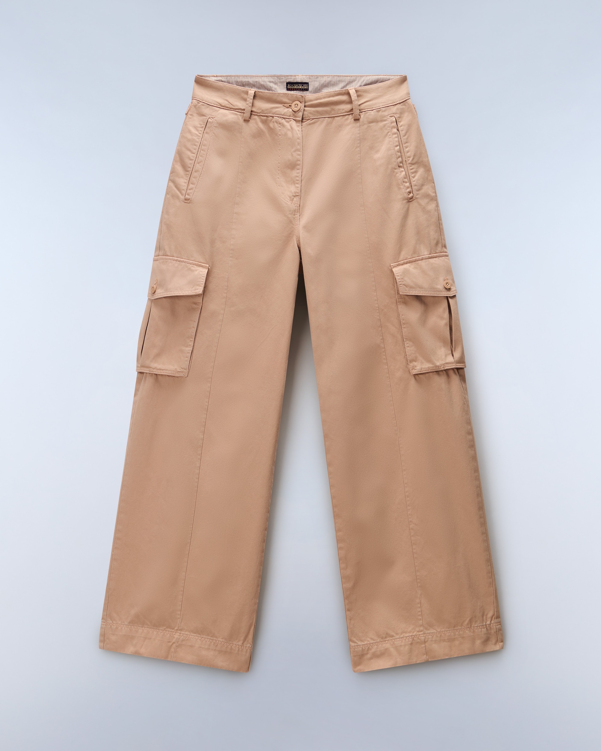 Vopsiți după confecționare, pantalonii cargo Selva pentru femei au o croială lejeră și un estetic inspirat de articolele utilitare. Sunt confecționați din 100% bumbac, moale și durabil, și au sigla iconică Napapijri.