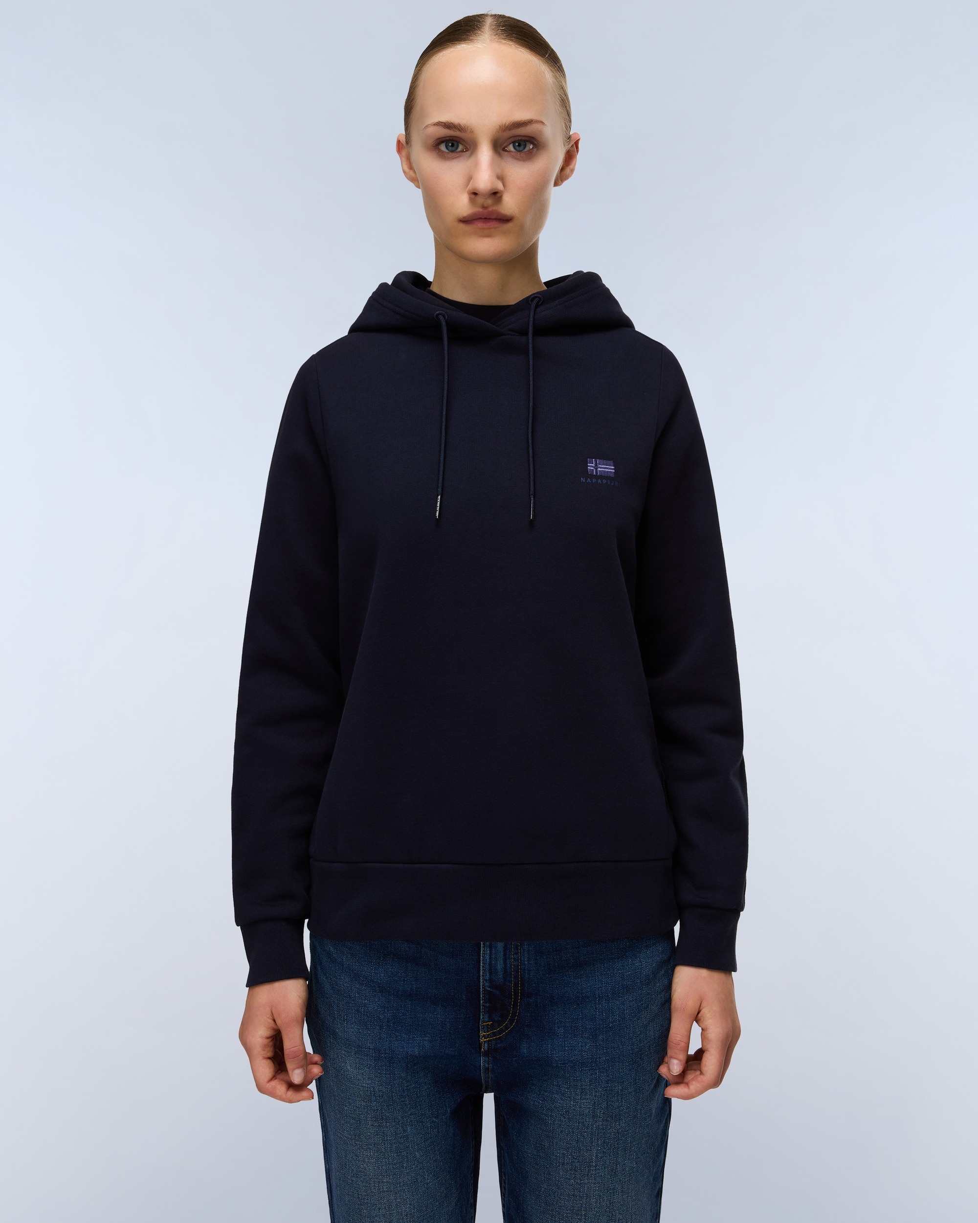 Hanoracul Nina pentru femei este confecționat în principal din bumbac și are o glugă cu închidere cu șnur și detalii tipice Napapijri pe piept.