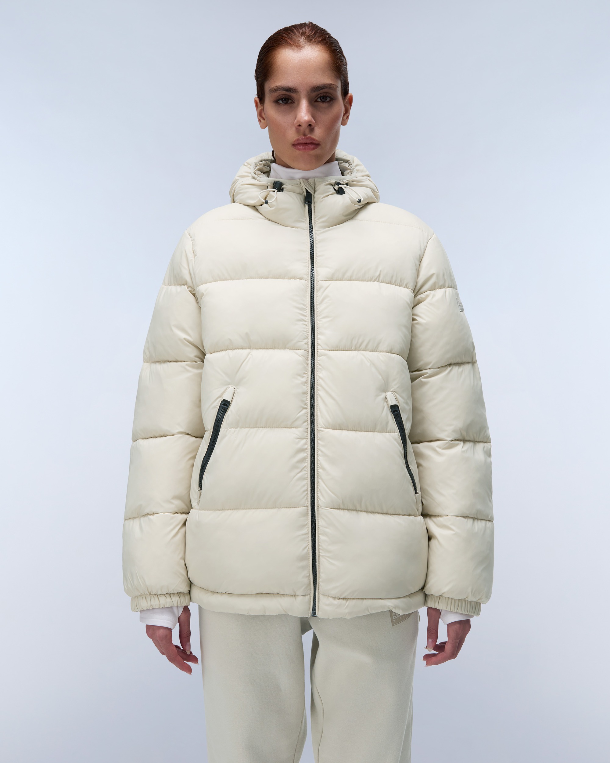 Geaca cu glugă logo Box pentru femei este umplută cu o umplutură caldă și confortabilă Thermo-Fibre™, din 100% material reciclat fără puf. Complet matlasat, este proiectată funcțional, cu o glugă și un tiv reglabile, protecție pentru bărbie și ochiuri din plastic.