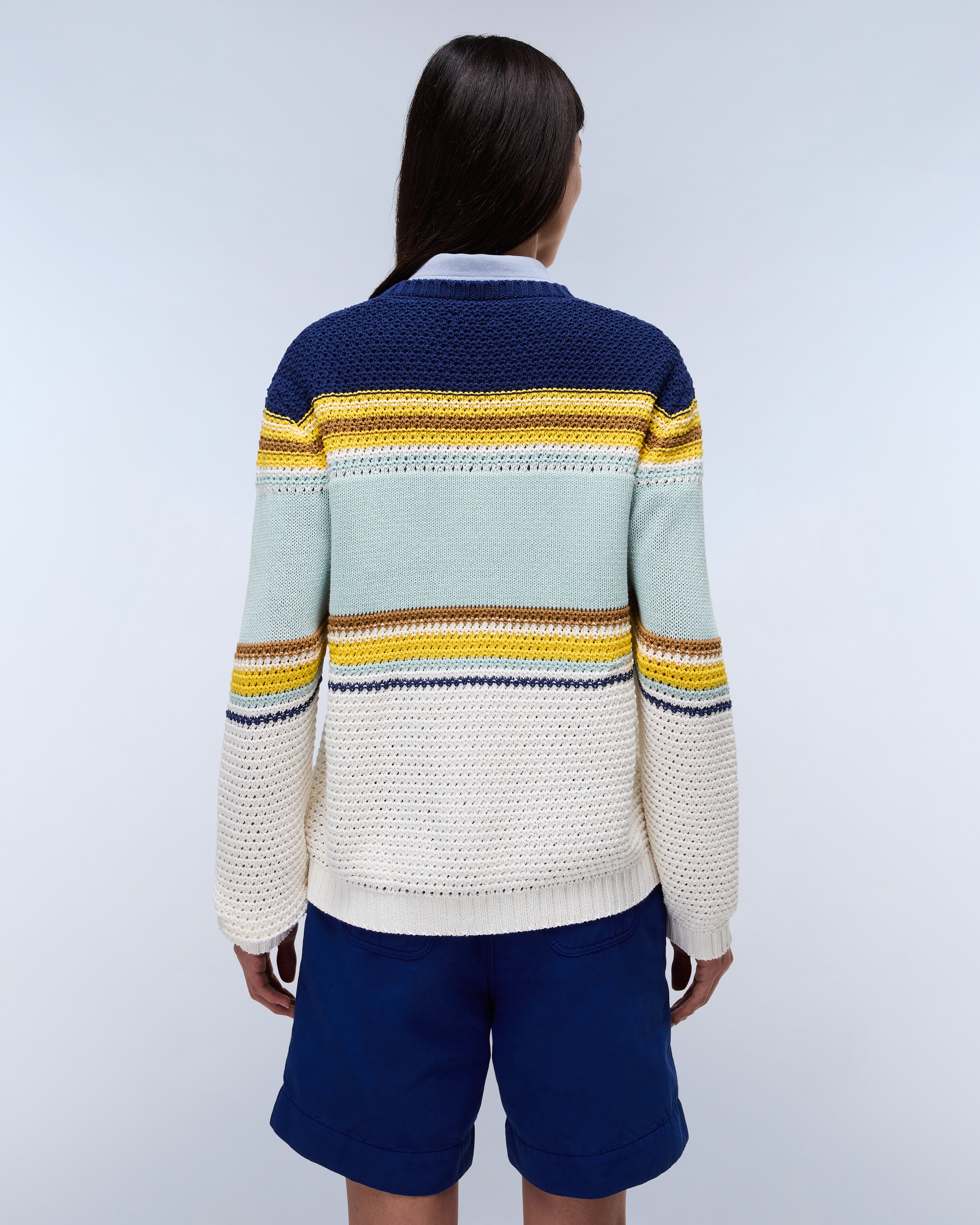 Cu un design inspirat din arhivele Napapijri, bluza Aulla pentru femei este un stil de patrimoniu, cu croială relaxată. Este confecționată din 100% bumbac cu un model țesut jacquard și un branding NAPA mare pe piept.